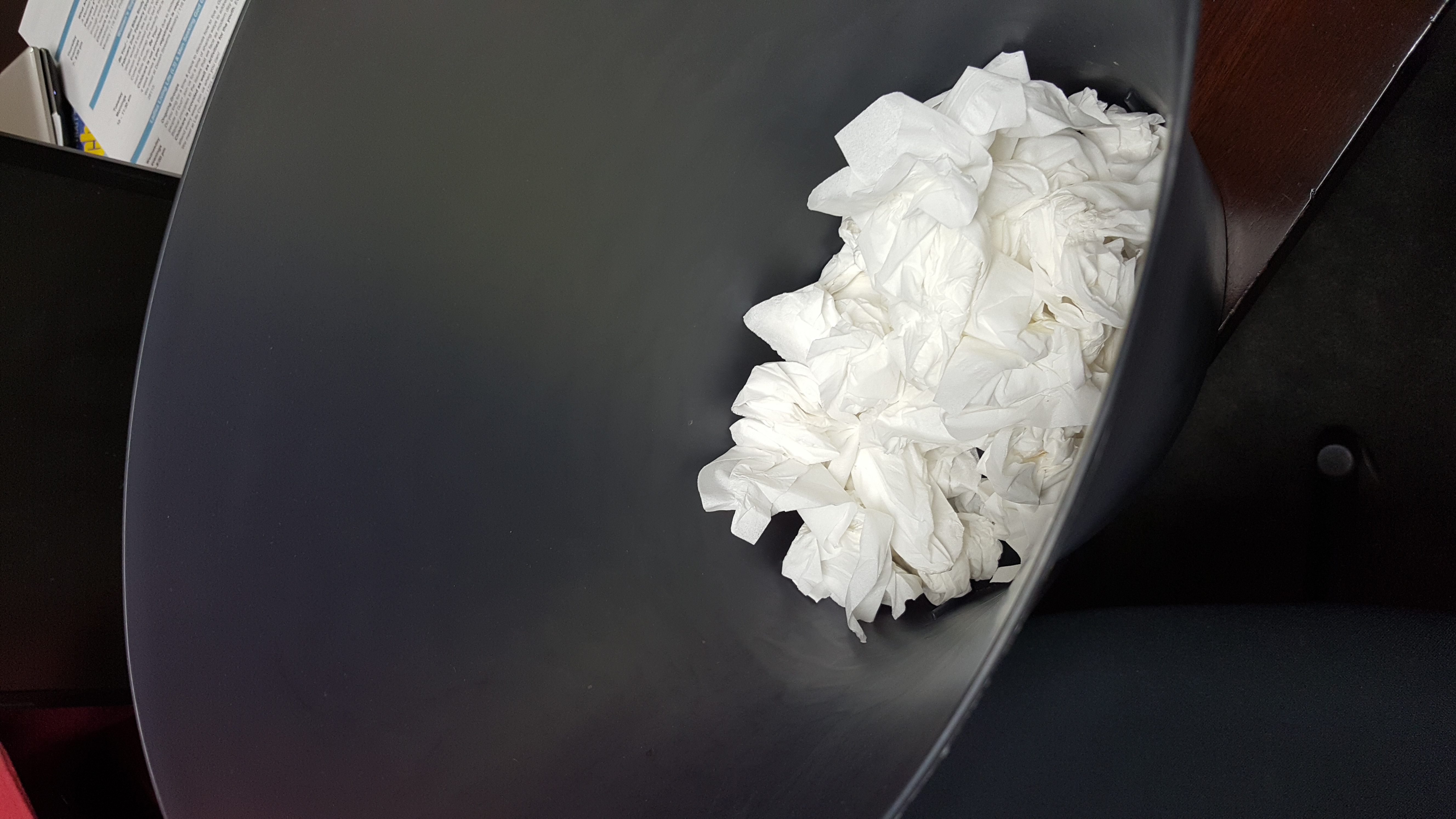 20160106_152611This rather unusual picture prompts my “unscheduled” blog post. As I was leaving the office today, I was emptying the trash cans. There is absolutely nothing remarkable about that act; I understand that. What prompted me was this trash can that is half full of tissues. For most people reading this, you are probably thinking, ” you are weird”, or maybe even, ” you are gross!”, but this trashcan reveals so much more than what you may be thinking. This half full can represents the tears of many women. Women that have cried tears of joy, tears of pain, tears of relief, heartbreak, and freedom. The tissues are full of tears that don’t live in someone’s heart anymore. These tissues represent emotions overflowing and chains of bondage being broken.